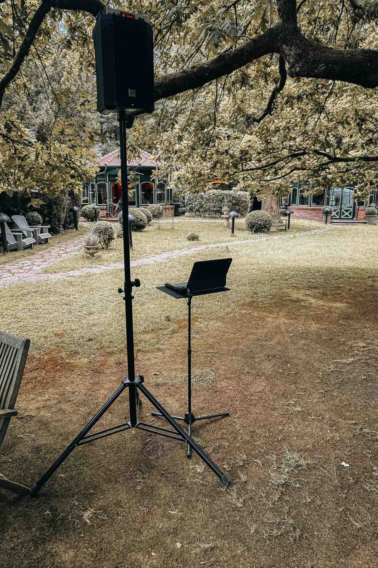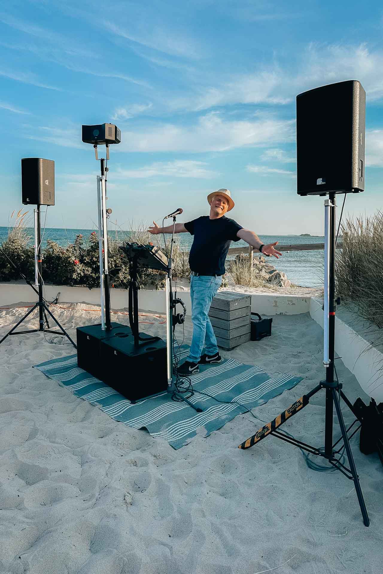 Noch bevor der erste Gast eintrifft, habe ich meine Technik bereits unsichtbar platziert. Ich sorge dafür, dass eure Wunschlieder im richtigen Moment erklingen und jedes Wort eures Eheversprechens dank meiner Profi-Mikrofone glasklar verstanden wird.