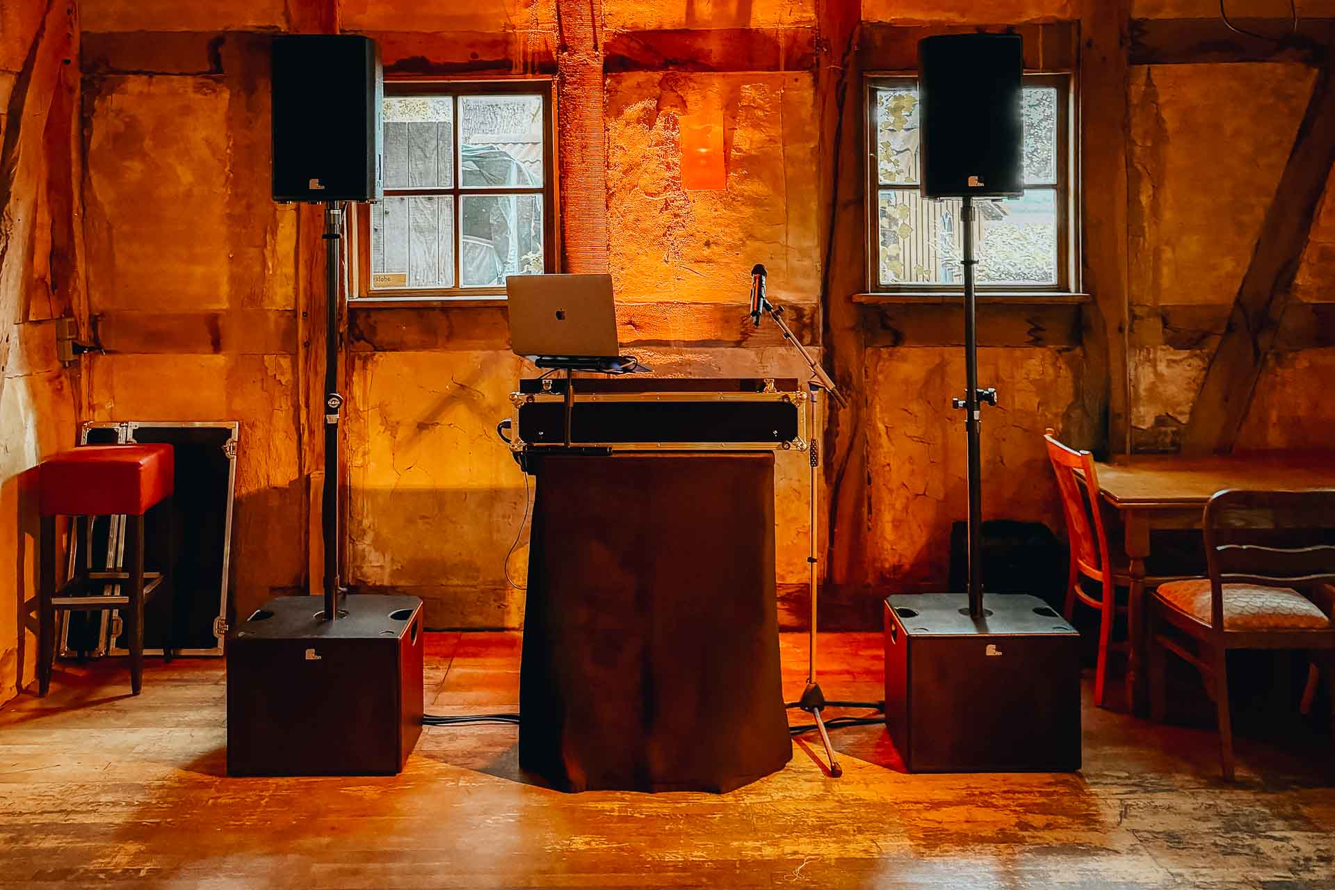 Vom Funkmikro für die freie Trauung bis zur Außenbeschallung und Videotechnik: Ich bringe das passende Profi-Equipment für jeden Moment deiner Feier mit und setze deine Ideen technisch perfekt um.
